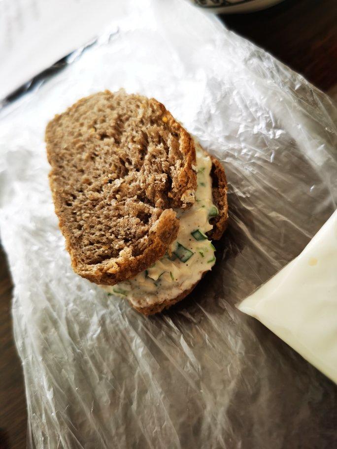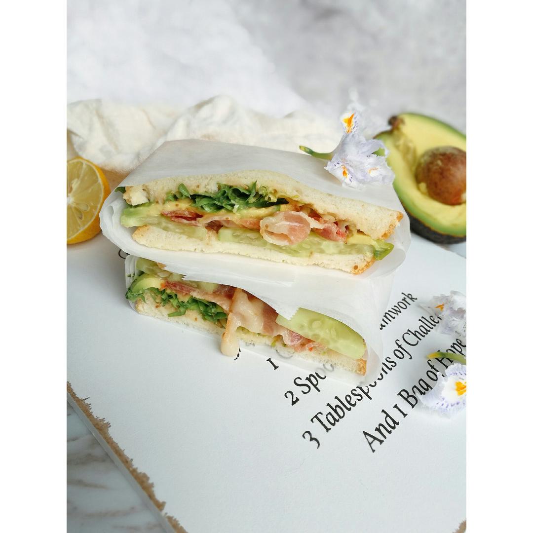 培根牛油果三明治,芝麻菜包少了,看起来有点单薄~酱料是最爱的焙煎芝麻~(
