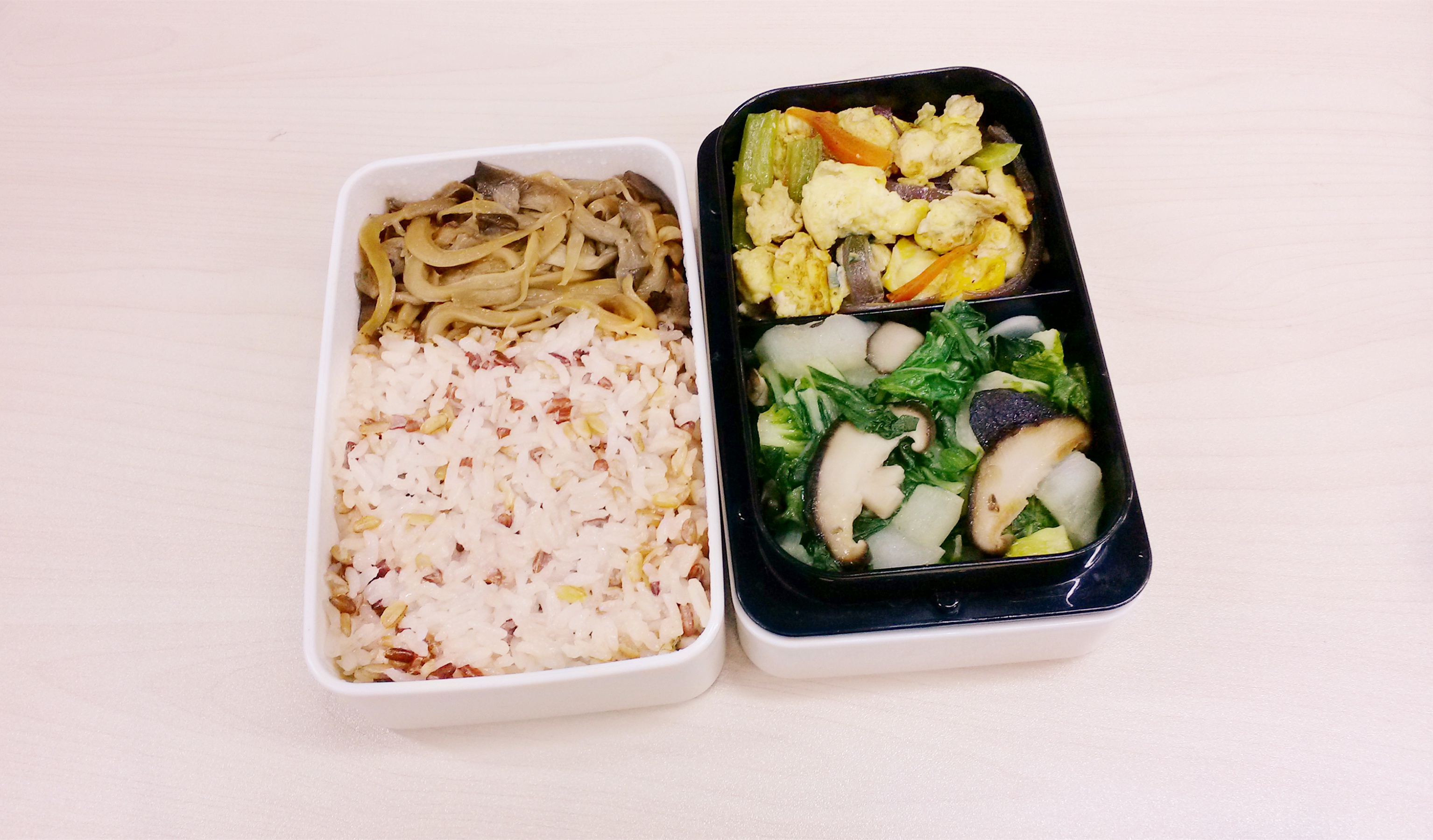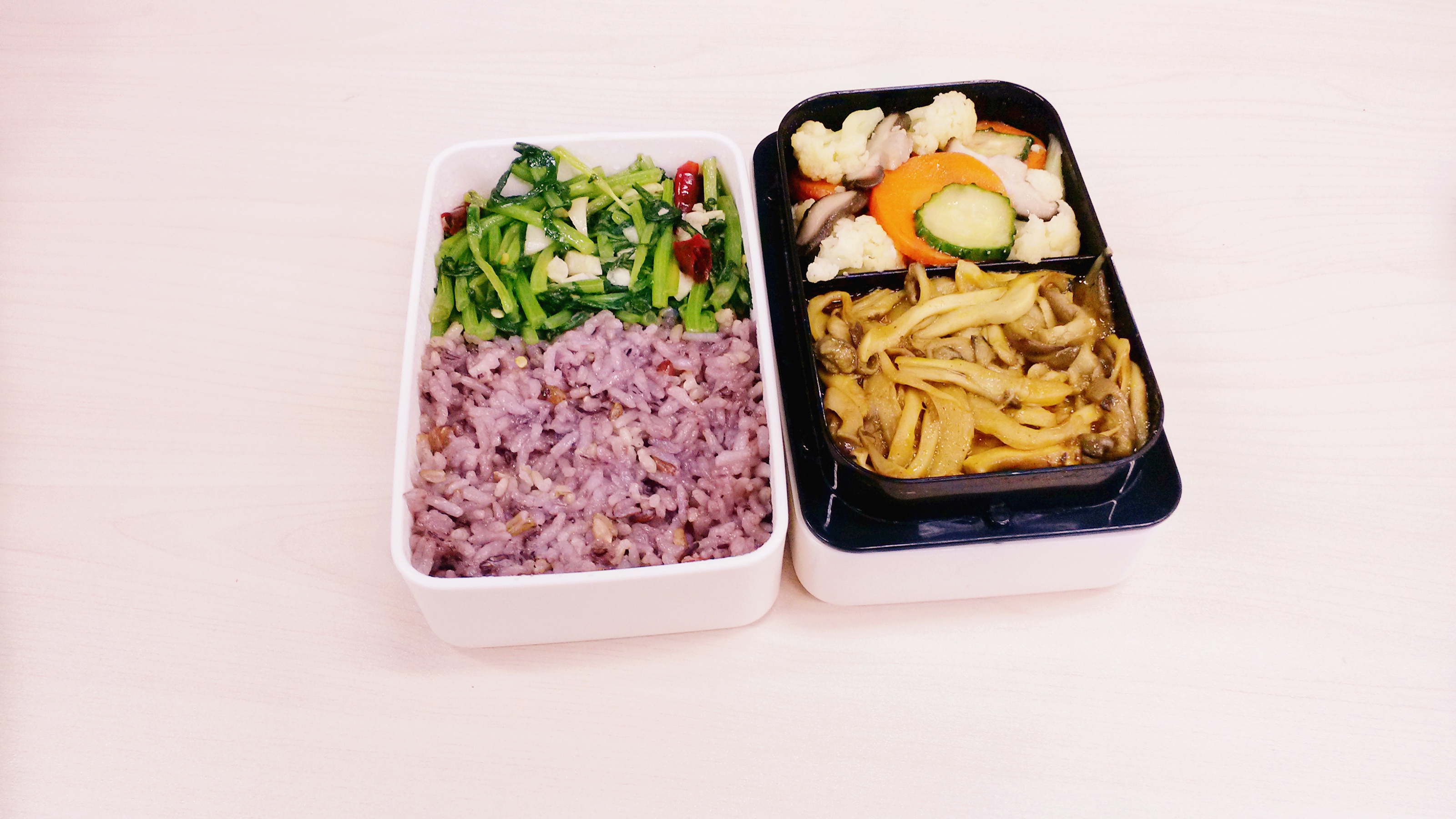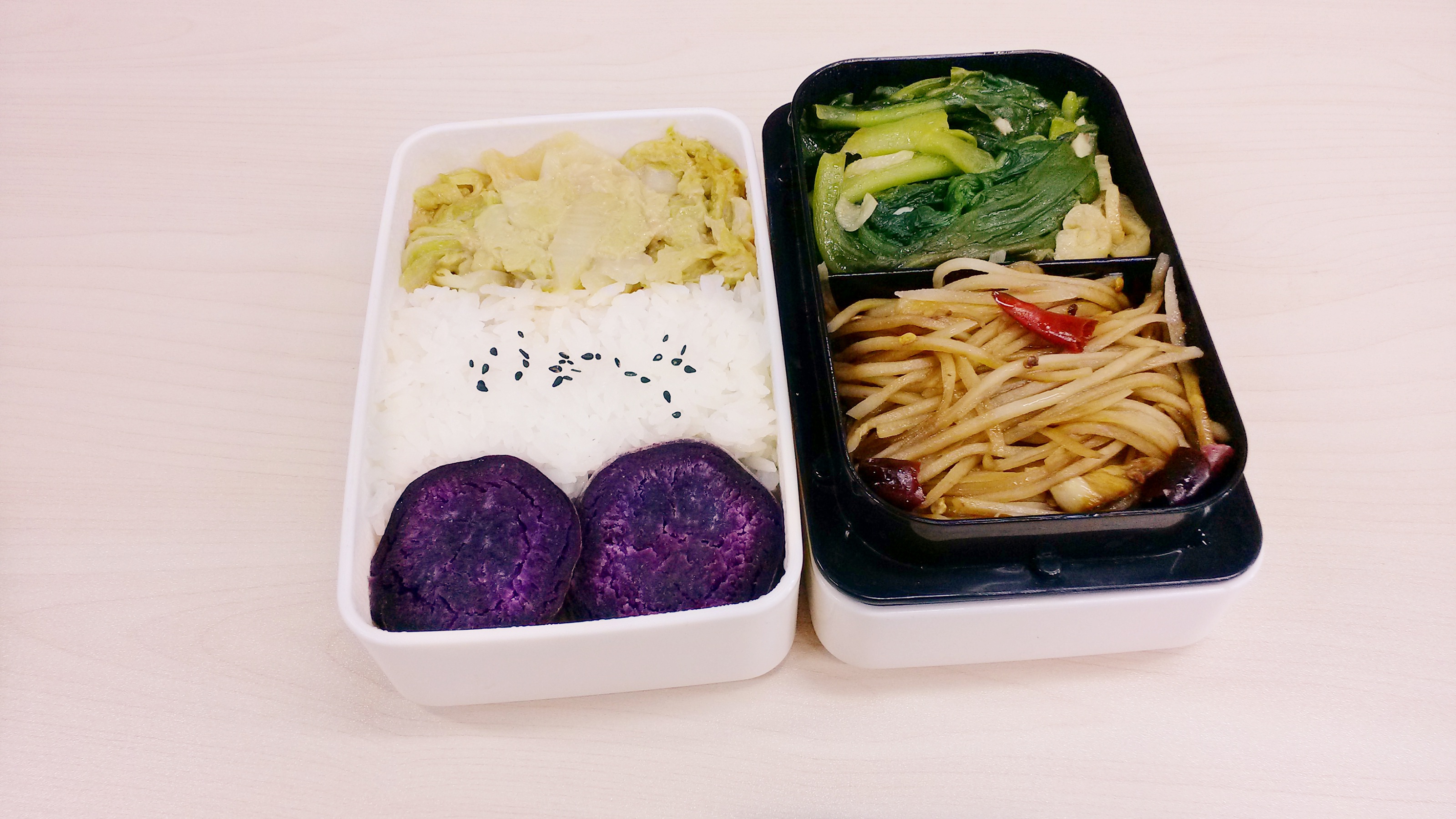 每天的午餐便当,早上做好中午带过来。因为早晨时间非常紧张所以不可能把便当弄的非常花哨,基本上能保证每天两个菜