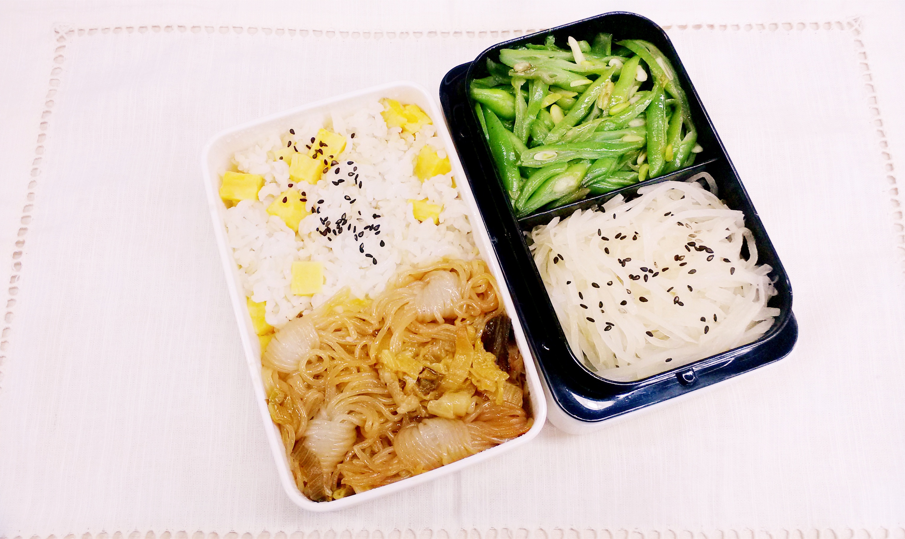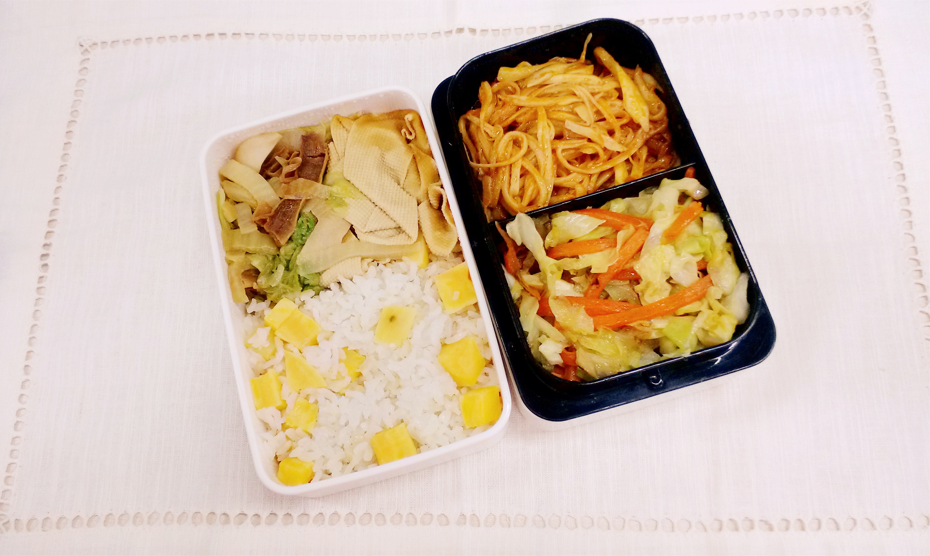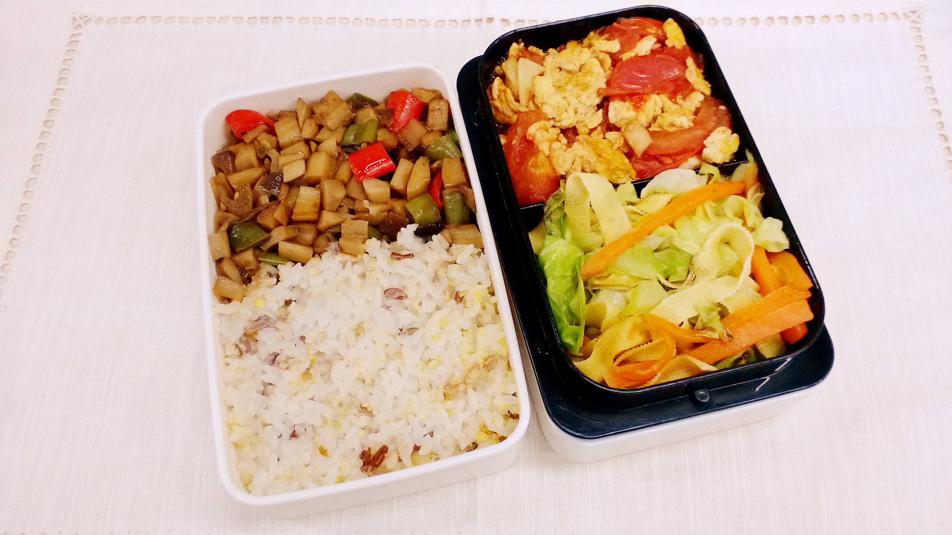 每天的午餐便当,早上做好中午带过来。因为早晨时间非常紧张所以不可能把便当弄的非常花哨,基本上能保证每天两个菜
