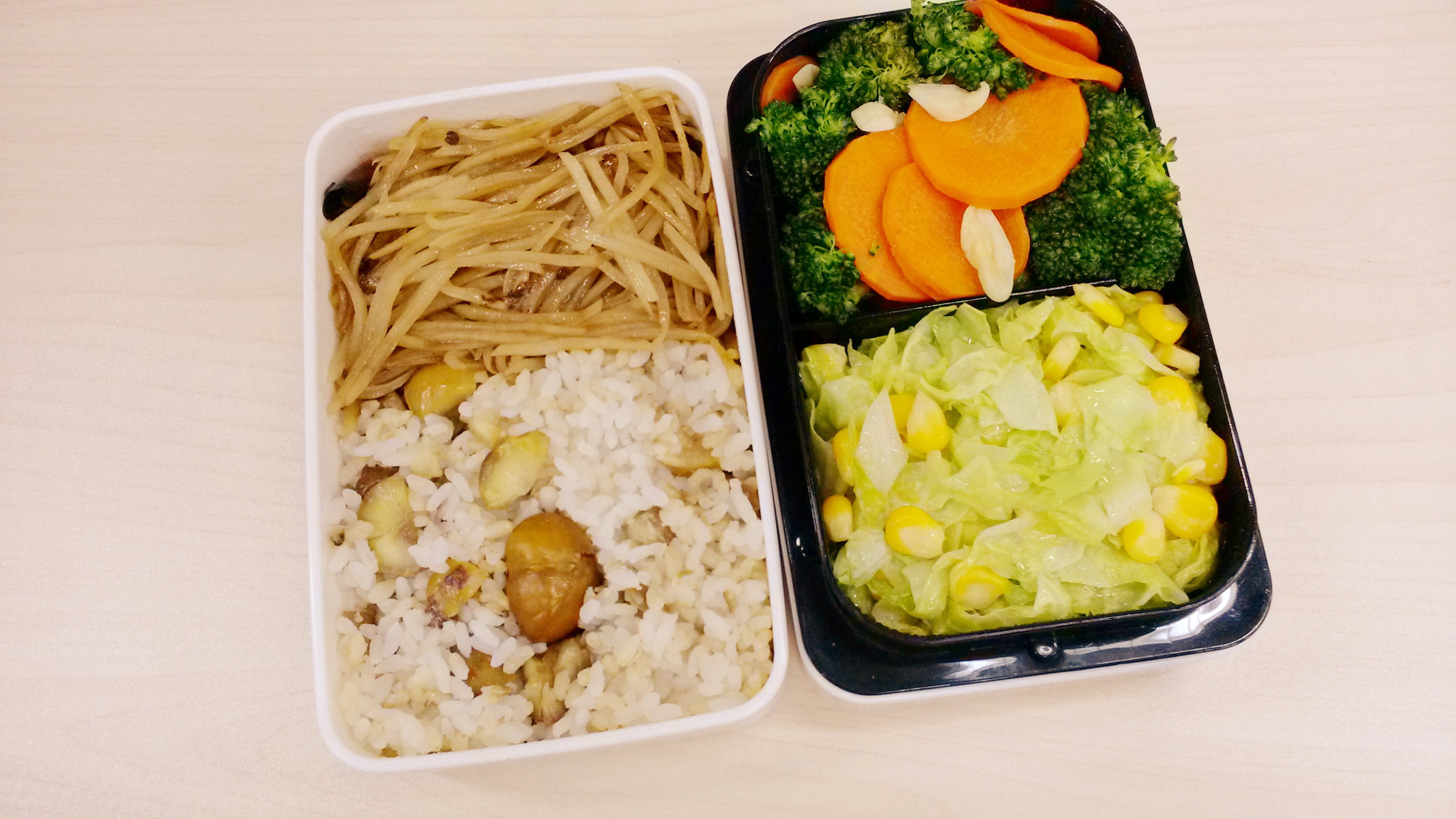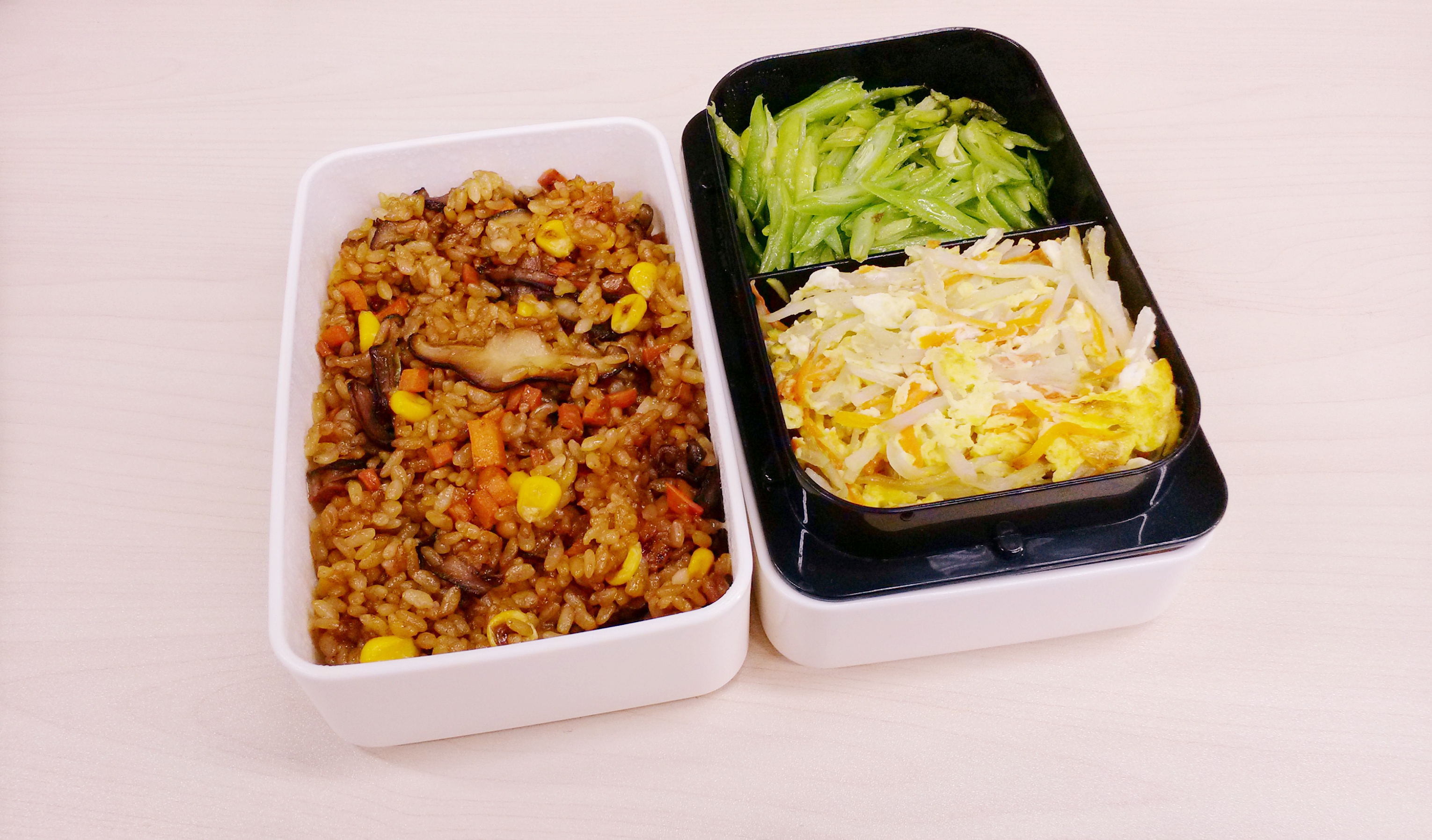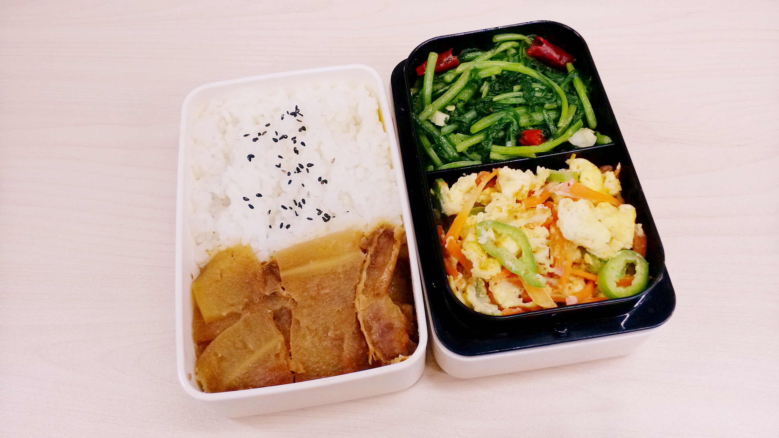 每天的午餐便当,早上做好中午带过来。因为早晨时间非常紧张所以不可能把便当弄的非常花哨,基本上能保证每天两个菜