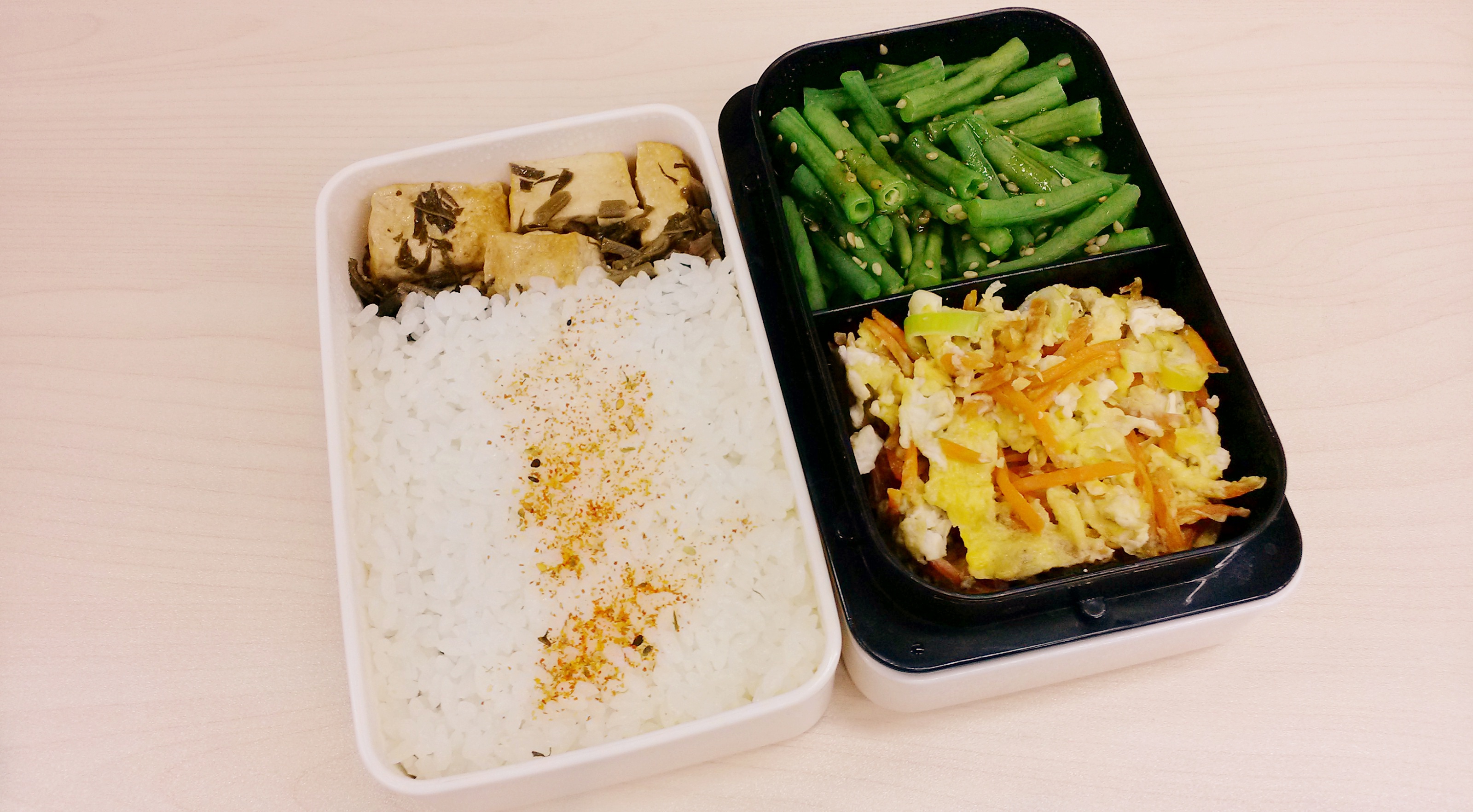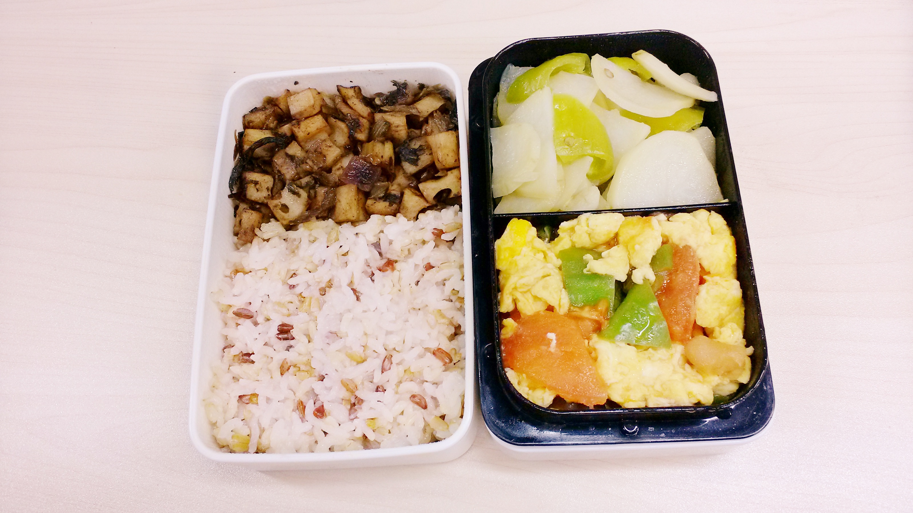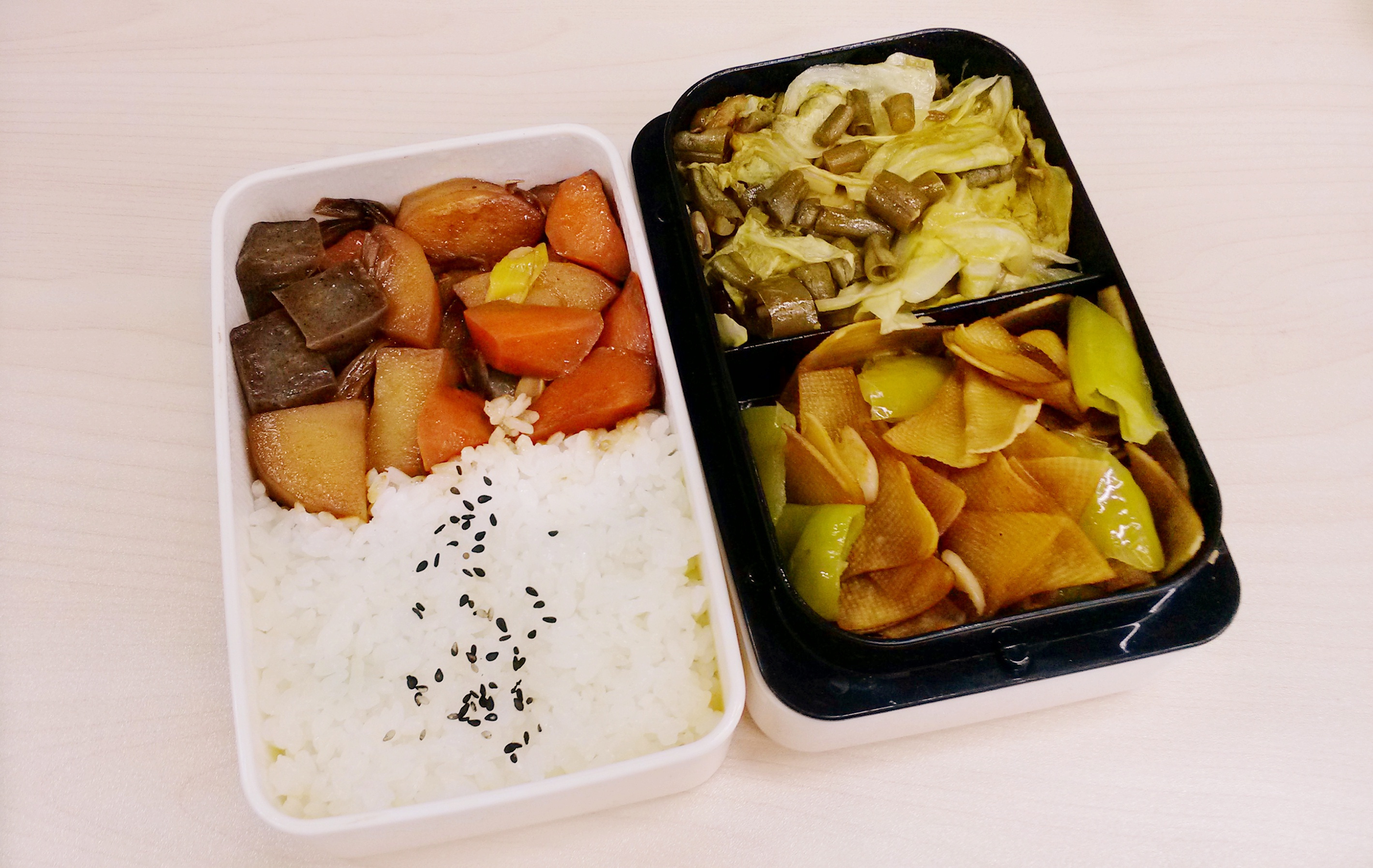 每天的午餐便当,早上做好中午带过来。因为早晨时间非常紧张所以不可能把便当弄的非常花哨,基本上能保证每天两个菜