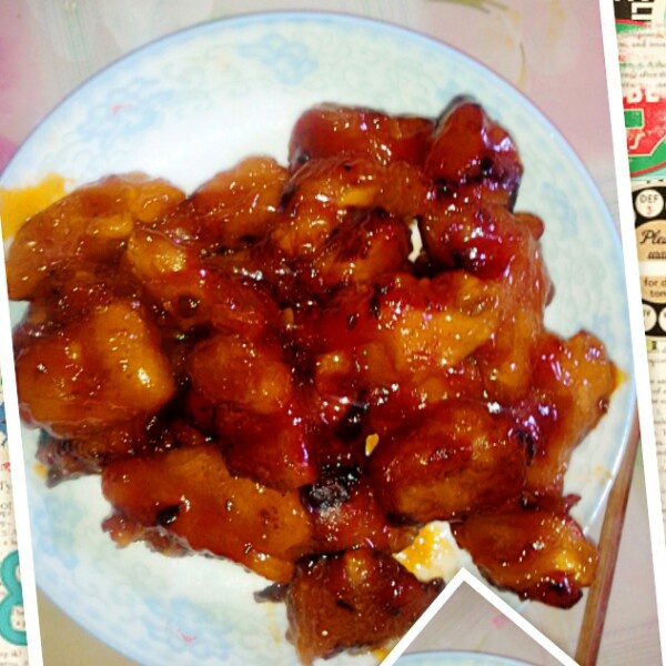 餐厅改良版的没有用酱油的糖醋排骨!要把排骨煮熟后裹上面糊下油锅炸成金黄色捞出备用。然后用番茄酱白糖和白醋和油熬成糖浆后,...