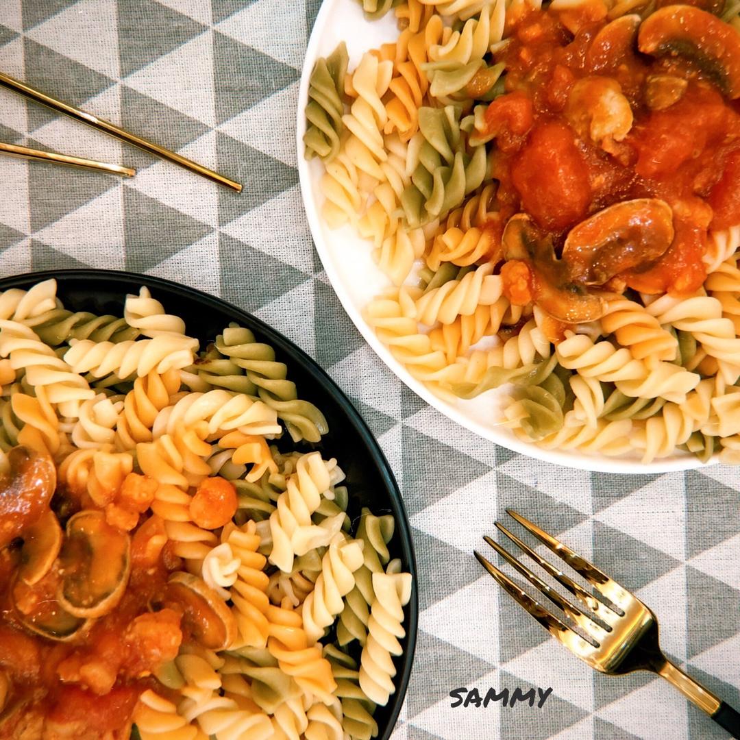 番茄蘑菇虾意面