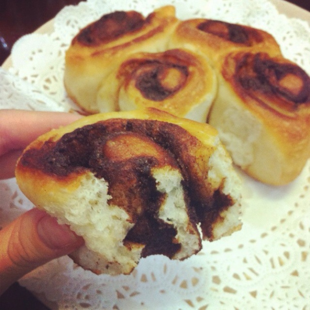 一直囔囔着要吃肉桂卷,在mino妹的诱惑之下(几百年前的事了),终于做了啊!!发酵全过程在冰箱完成,不...
