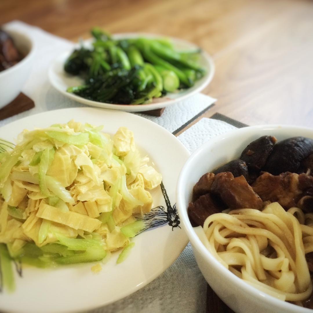 排骨蘑菇面+西芹清炒腐竹