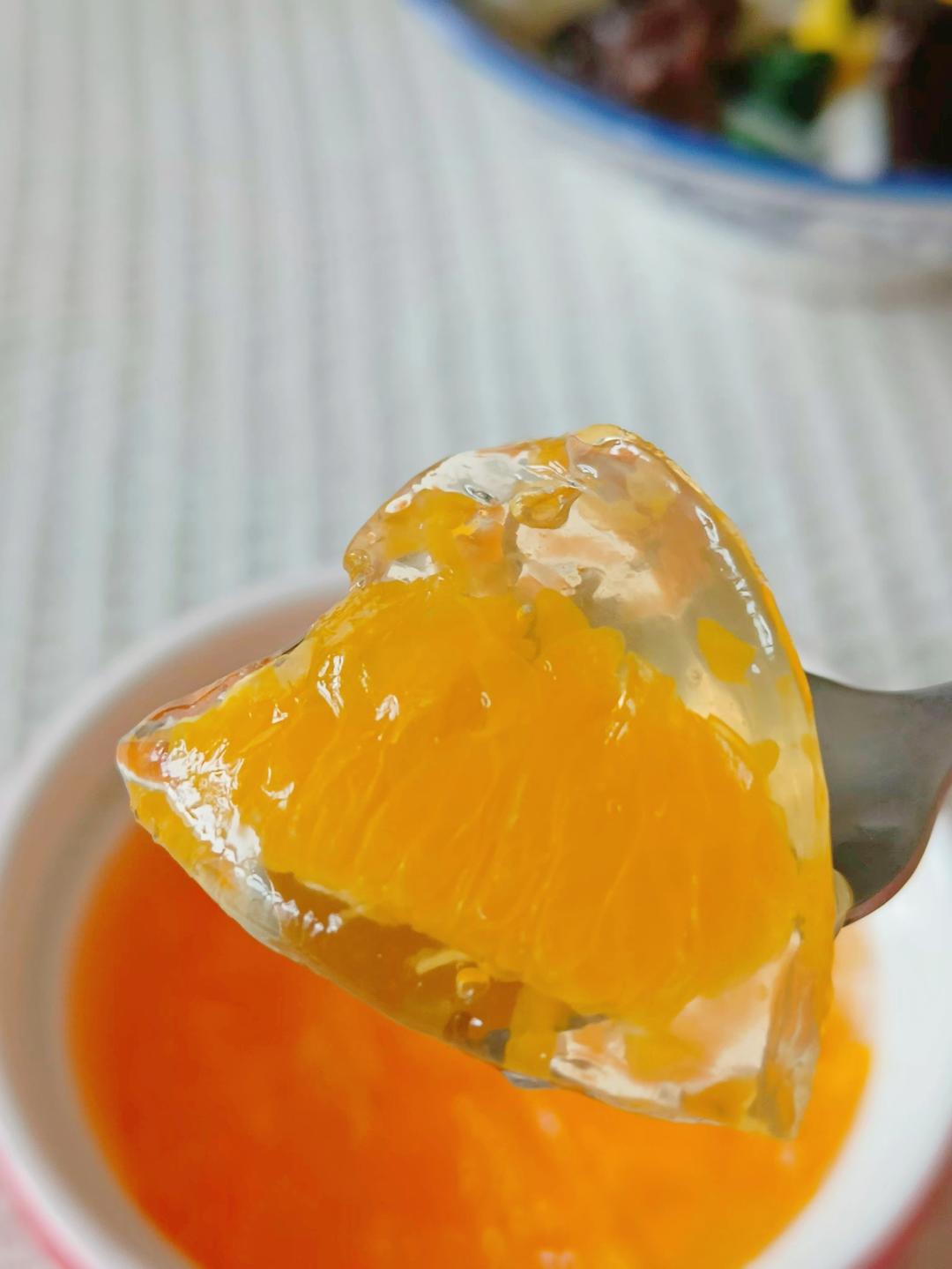 四个砂糖橘➕几粒黄冰糖➕一勺白凉粉➕一碗水,静置两小时,成了[胜利]