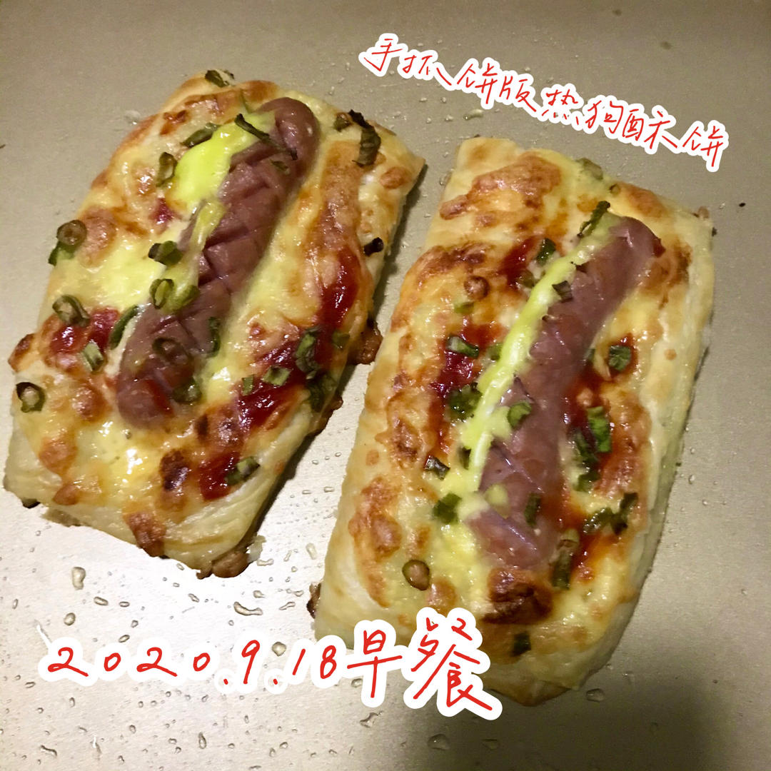 手抓饼版热狗酥饼~家里囤了很多手抓饼,就是为了早餐方便。手抓饼实在是太单调,但是厨友们太...