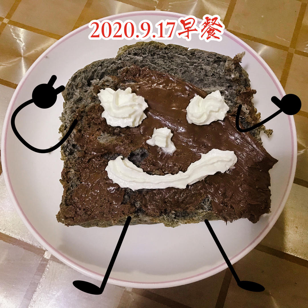 #早餐•2020年9月17日# 昨天的吐司,今天加了巧克力酱和奶油,一碗醪糟鸡蛋,打包带走。晨曦很美。