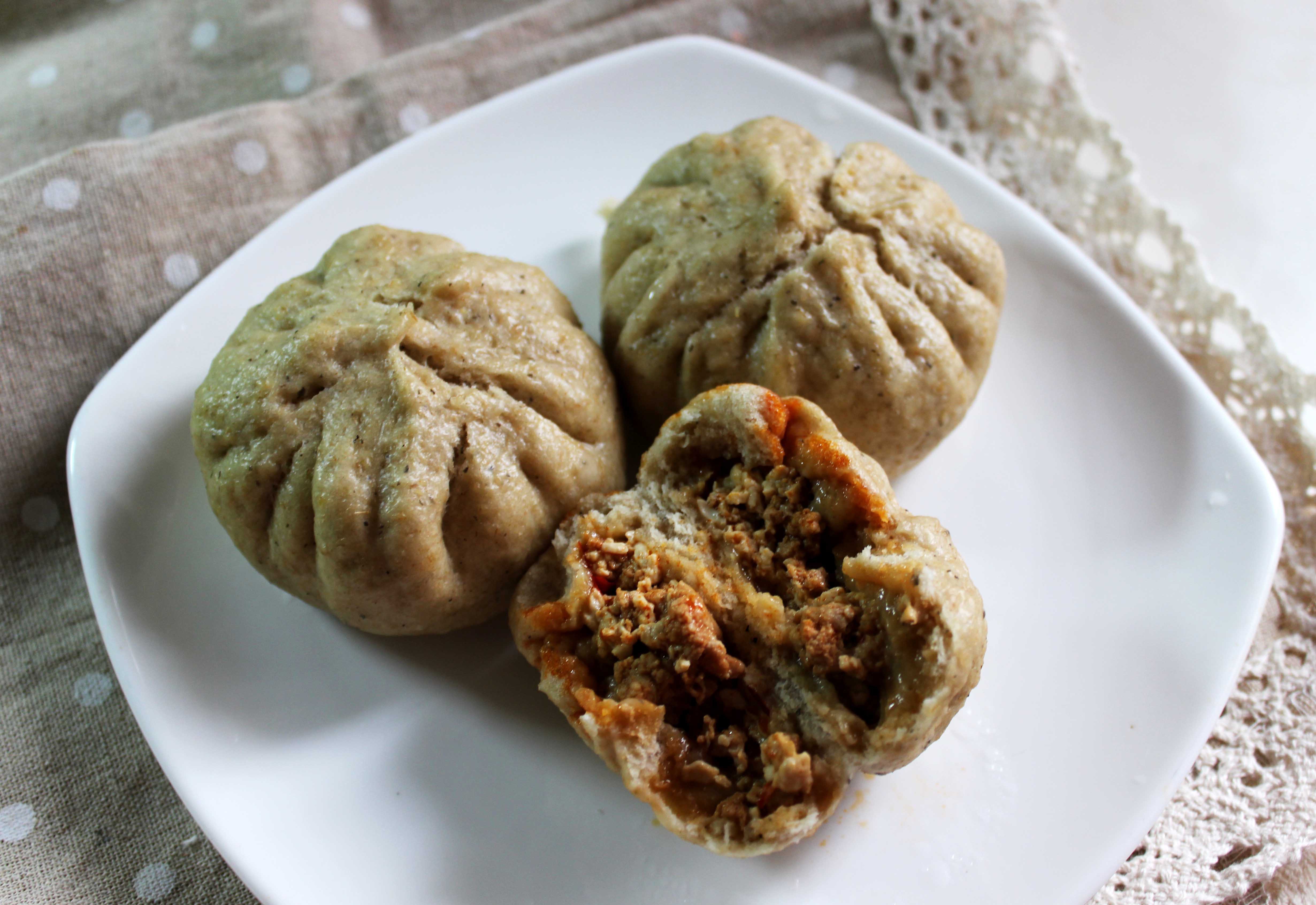 放了黑米,燕麦,全麦粉,陷里面放了牛肉+鸡肉+木耳+粉丝+娃娃菜+胡萝卜+玉米粒 超级丰盛的料 超级好吃