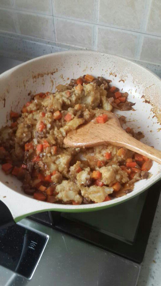 咖喱土豆泥!下次要早点下胡萝卜,估计软点更好吃!