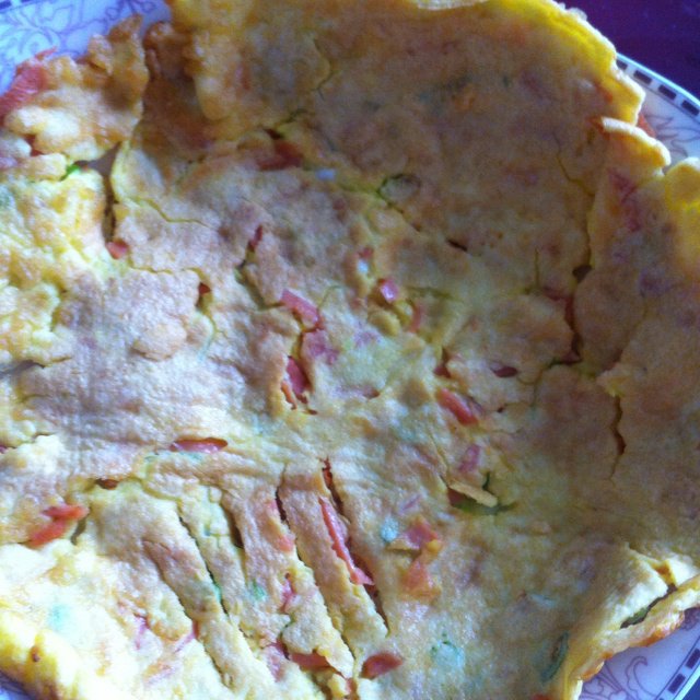 自己又加了一点火腿肠 可能水和面粉放的有点少 但是味道还不错