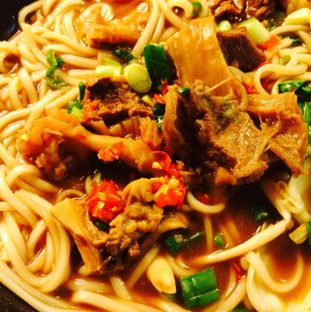 昨晚煮了四小时的红烧牛腩,今天回家下了用十分钟下了红烧牛腩面~好吃的自己都想哭~