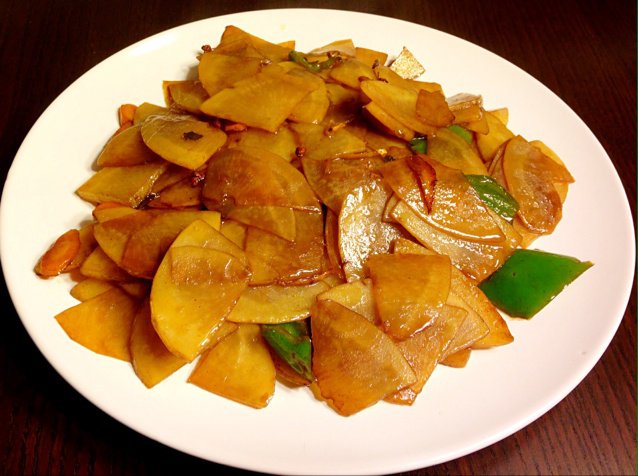 这个是我炒的拉,,哈哈哈,,妈妈的刀功真不是盖的~啦啦啦,,我也想会切土豆片~