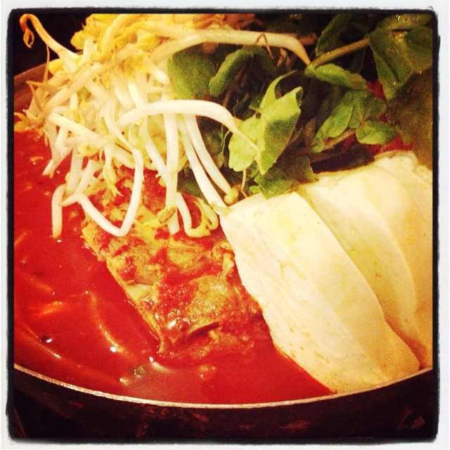 晚餐出去吃的韩国大骨泡菜豆腐锅,好好吃,吃到撑
