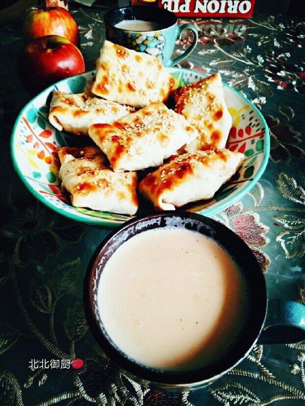 早餐烤包子,奶茶。