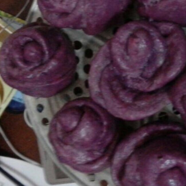 呵呵第一次学做.紫薯玖瑰馒头.