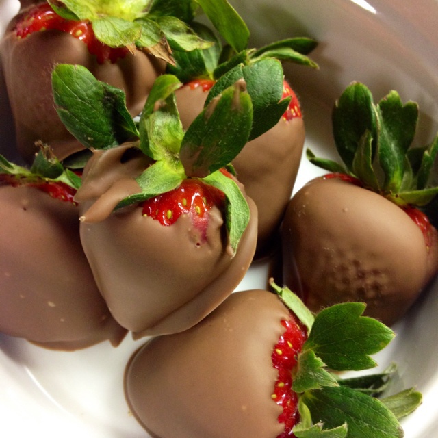 Fraise au chocolat 这次用的milk chocolate,微波两分钟融化...