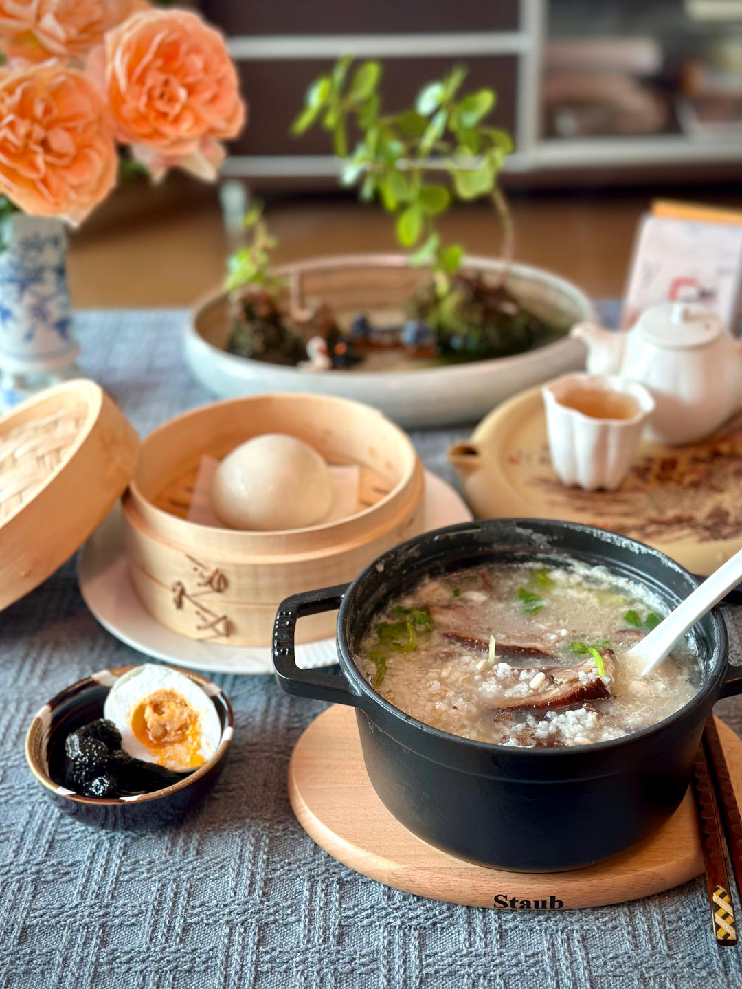 早起喝茶煮粥,蒸个郁香的香青菜肉末团,嗲不嗲吃的人知道,不过看看也是口水ing,库存的烧鹅空炸回温丢把蛤...