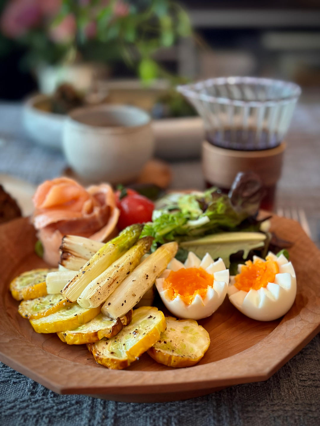 烤点白芦笋和节瓜,冰箱里盲摸了面包,磨豆手冲,貌似要补货了。阴雨绵绵的春风日~