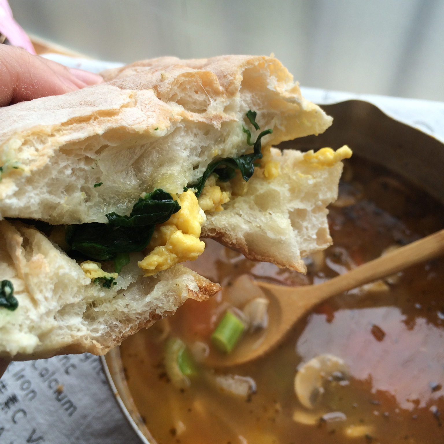 菠菜鸡蛋三明治与意式蔬菜汤