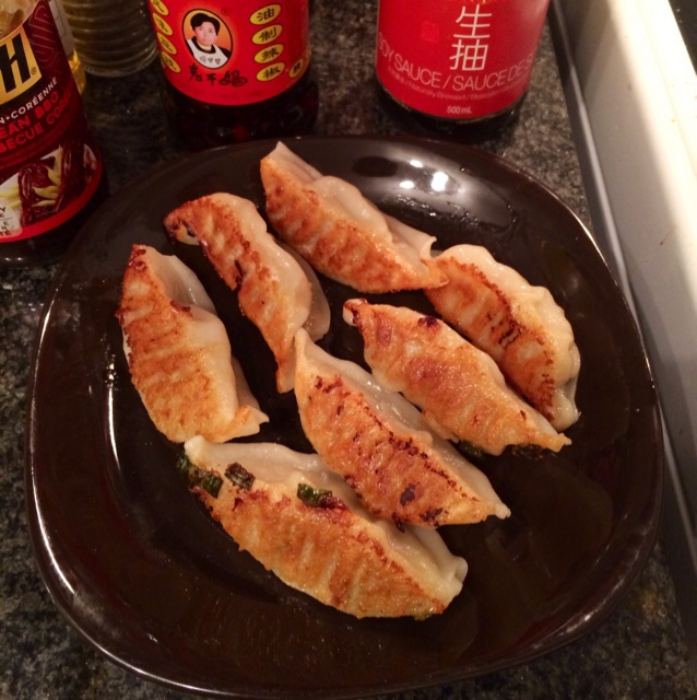 夜宵,简单方便的锅贴,加上醋和老干妈,味道特别赞
