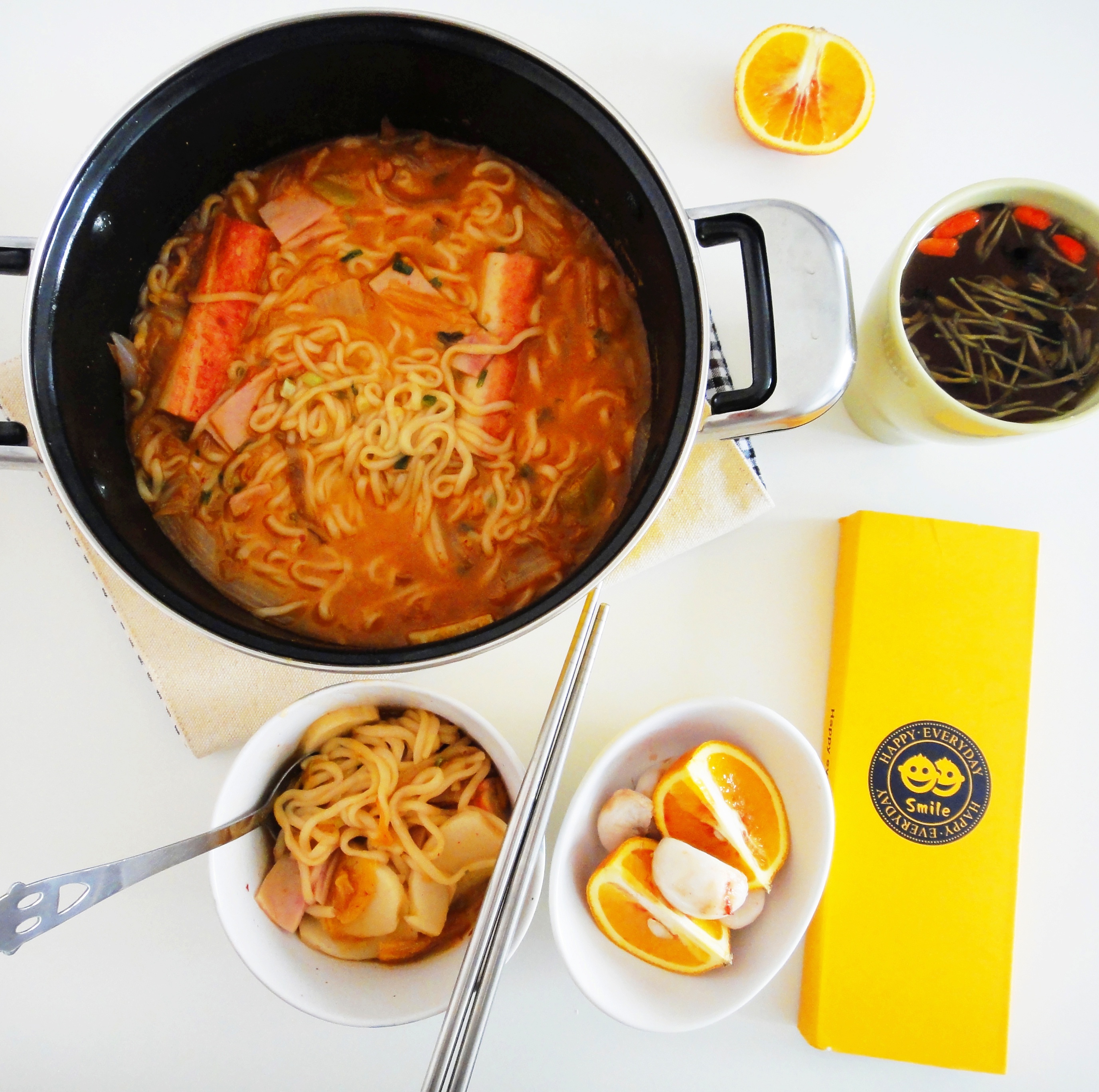 部队锅+金银花菊花枸杞茶+橙子和山竹