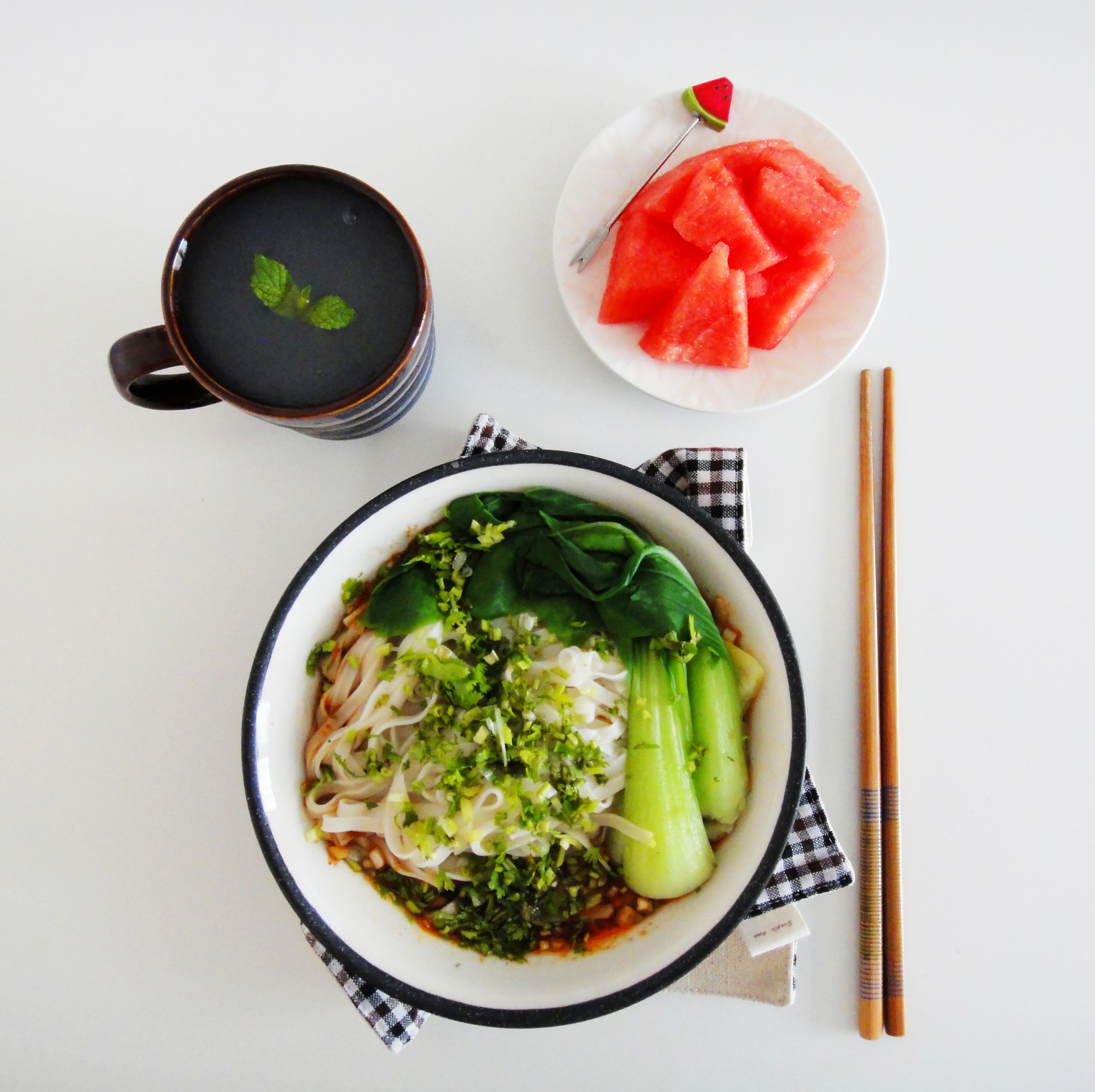 青酱意面+黑咖+西瓜【红配绿丑的哭于是不让他出镜!】