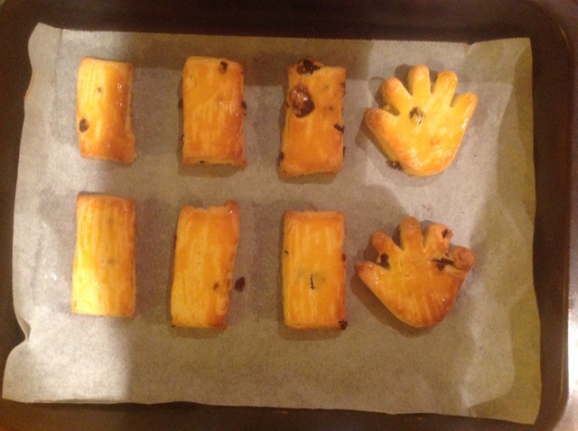 米有奶粉用两勺炼乳代替了。材料减半的量做这几个刚好。好香好酥脆的说 ~
