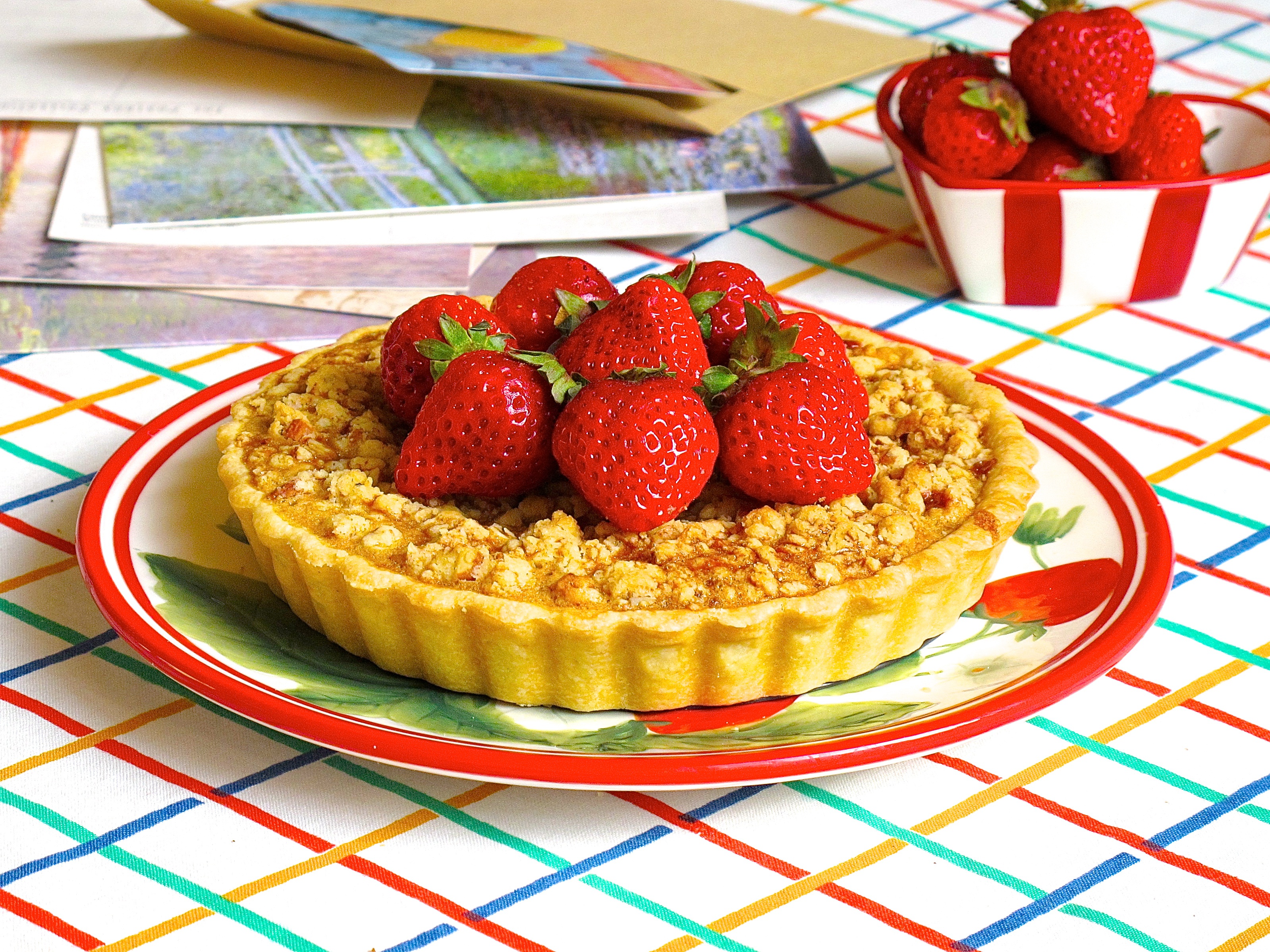 其实是之前家里有很漂亮的草莓就做了这个派,现在外面卖的草莓经常都是个头巨大但是没有什么草莓味儿,这个还不错,只是味道还是...
