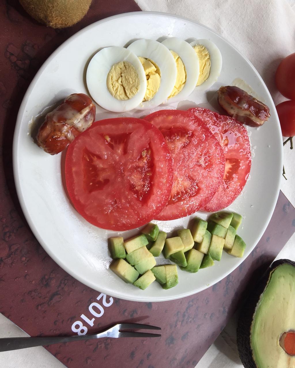 食材:水煮蛋,西红柿,牛油果,小肠 #