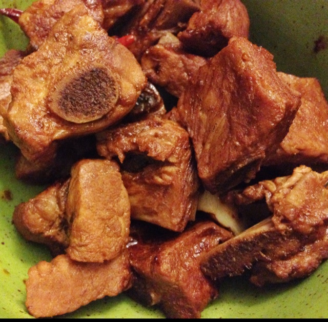 排骨排骨!暗黑料理来了~ 加了罗勒叶,花椒,红辣椒,大蒜,生姜,老抽,红糖,麻油,哦,还...