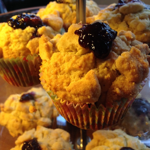 做的时候没有鲜蓝莓拿蓝莓酱和蔓越梅双莓杯子蛋糕了