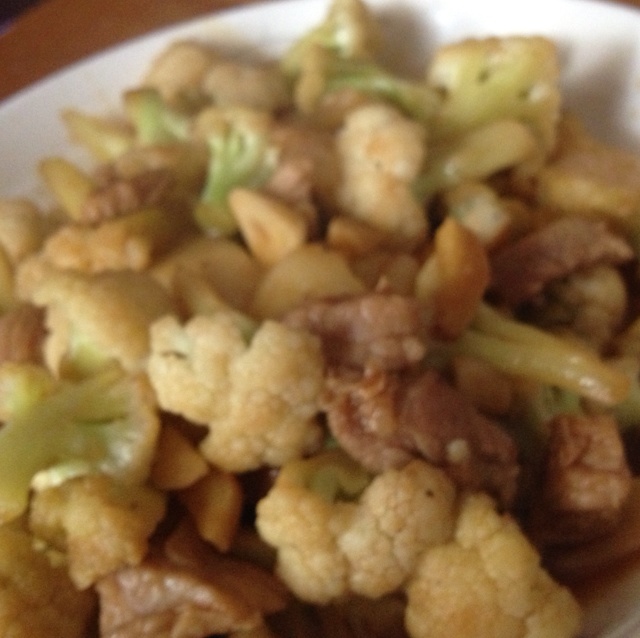 嫌焯水麻烦直接炒的,也不错。还有一道红烧肉,配点素菜吃解腻。