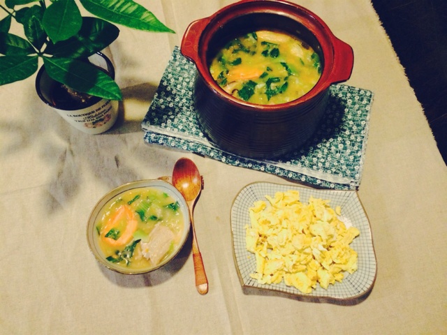 砂锅鲜虾排骨粥^_^炒鸡蛋