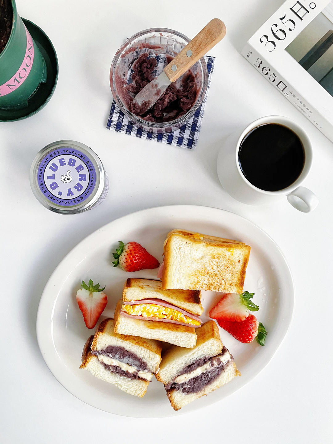 红豆沙烤年糕、厚蛋烧、草莓🍓