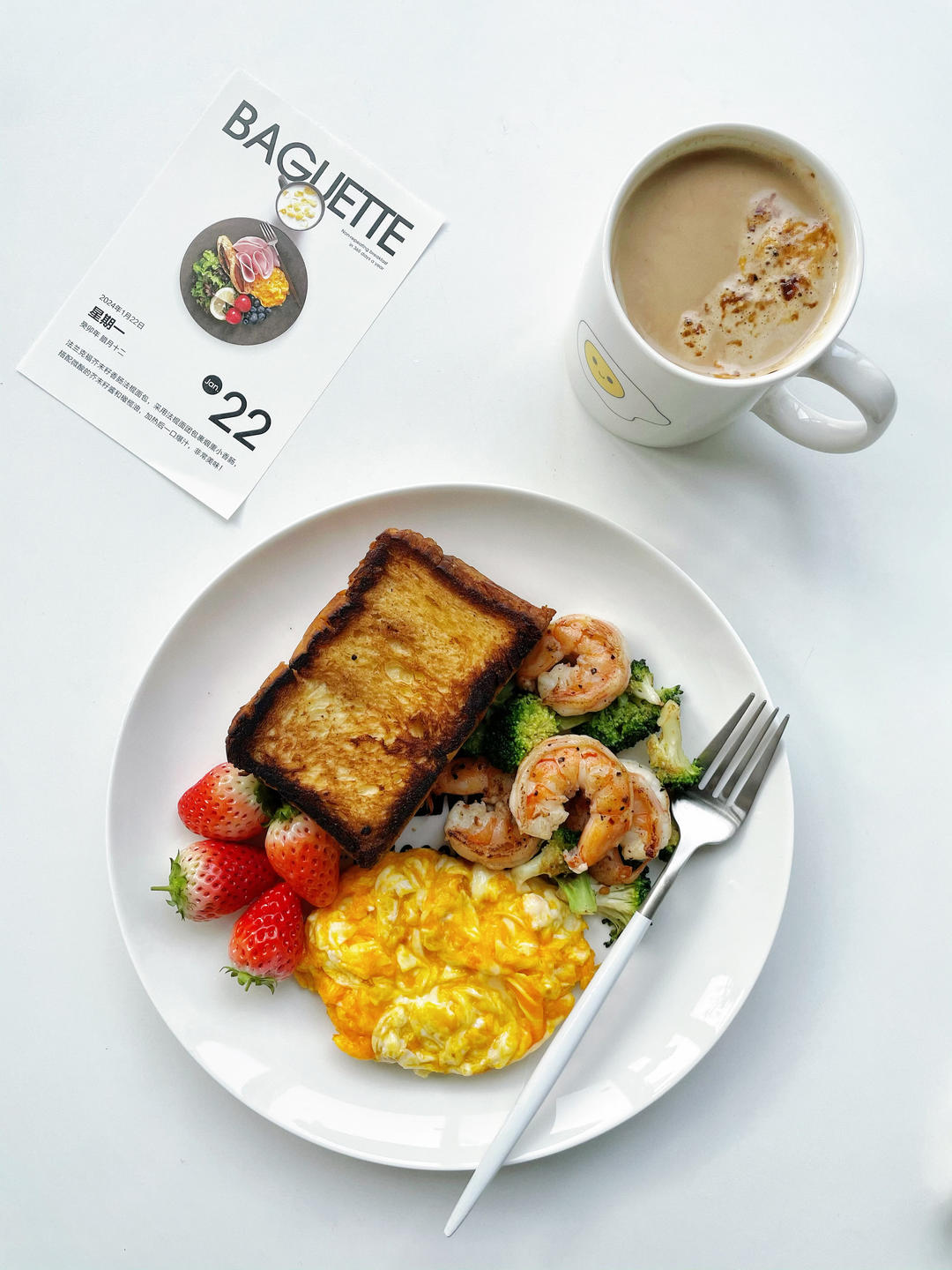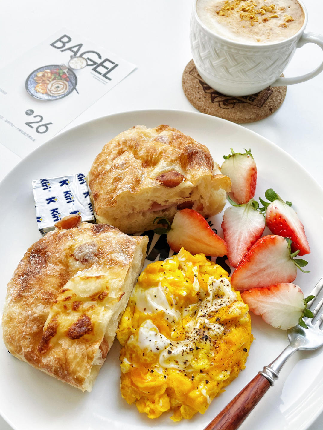黄油煎吐司、滑蛋、草莓奶酪、拿铁☕