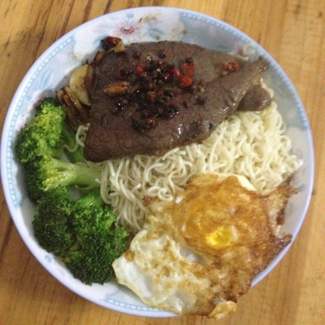 儿子生日为他做的,要求九成熟,我想应该煎成全熟了吧
