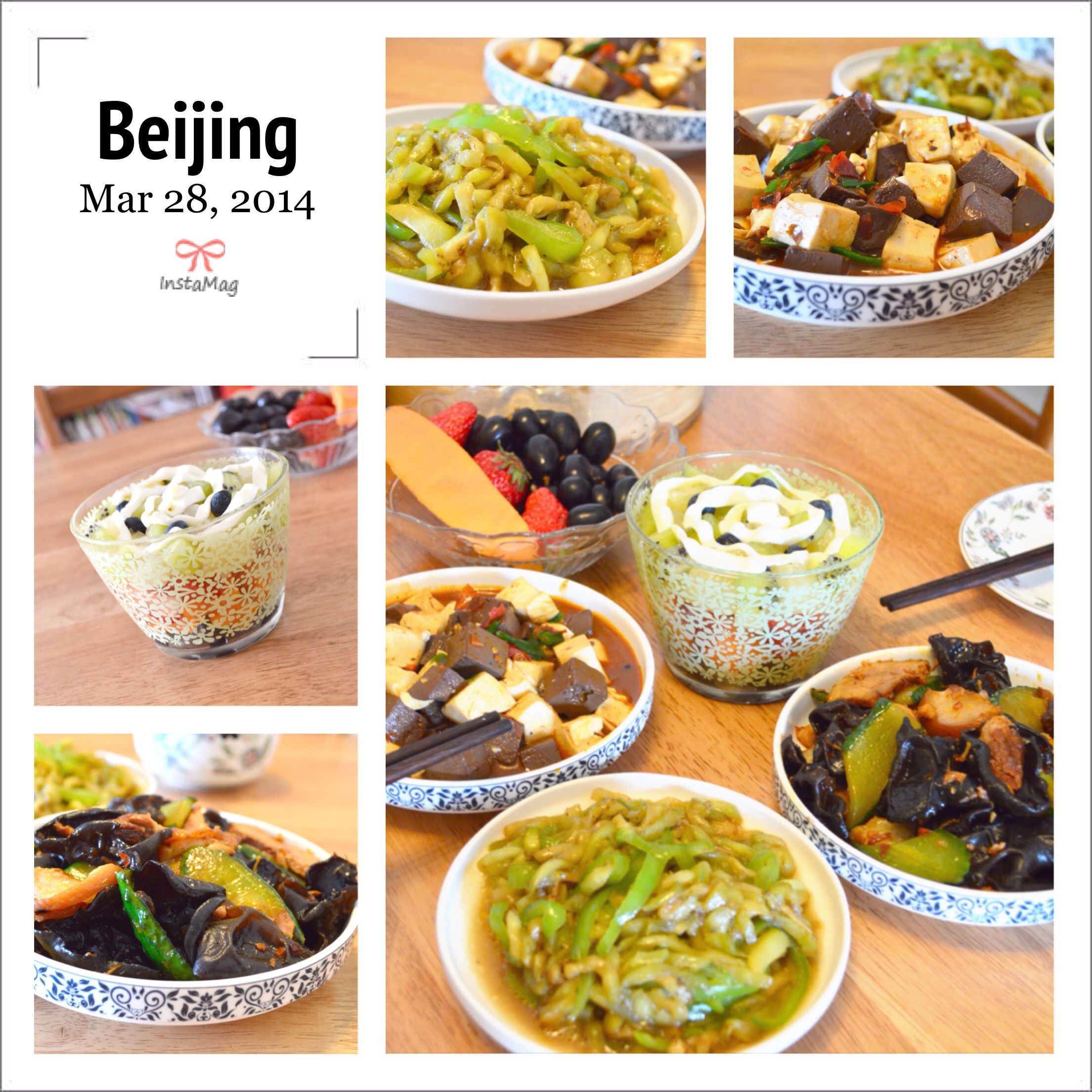 【辣炒红白豆腐+尖椒炒茄丝+木耳回锅肉+水果...