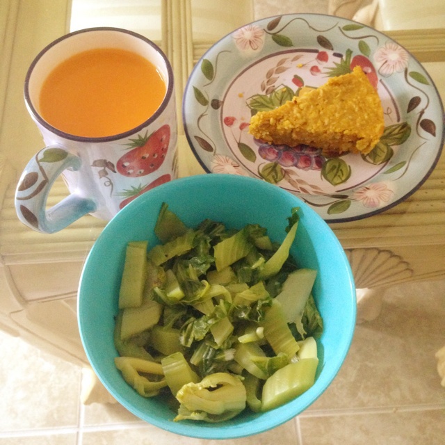 蜂蜜橘子汁&盐水芥菜&燕麦南瓜蛋糕~这粗粮糕真心。。促!进!肠!胃!蠕!动...
