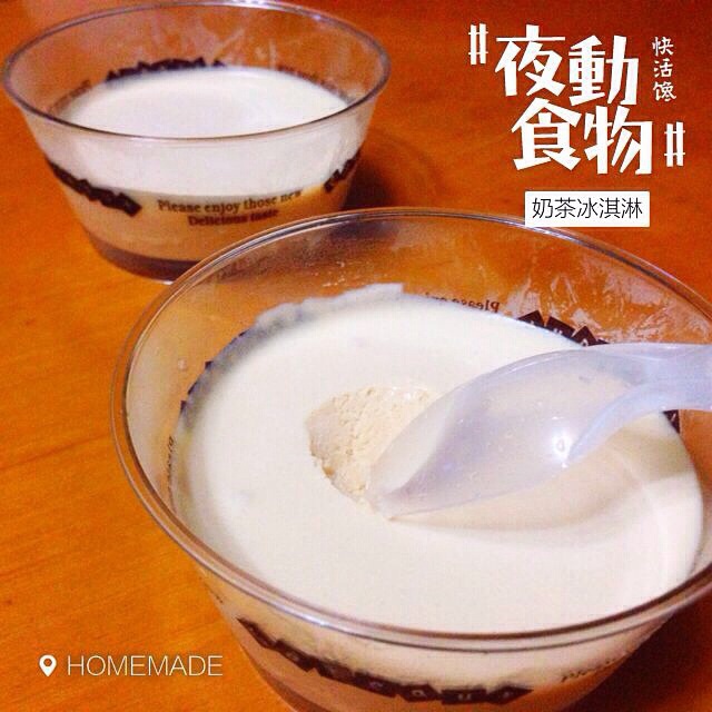 终于做到一挖就开不硬的冰淇淋!做的是奶茶味,甜了点~