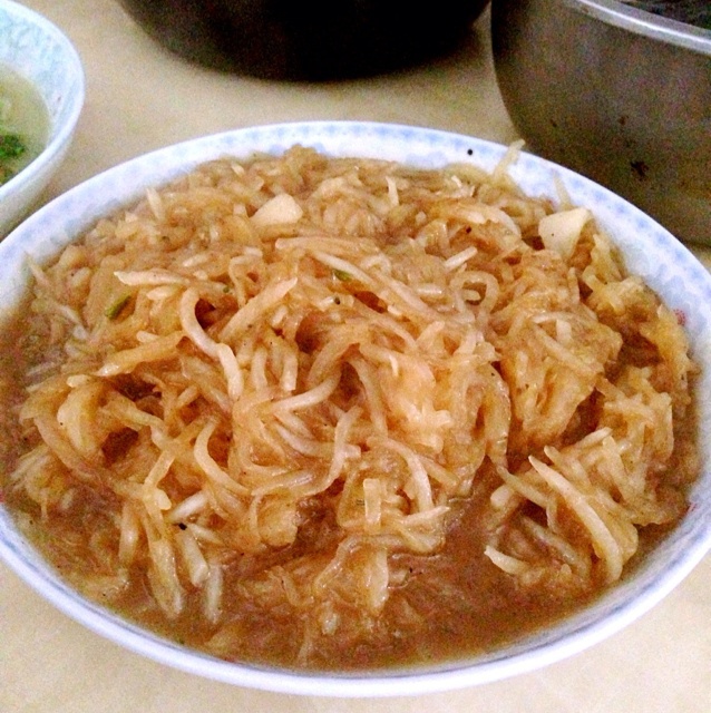 炒萝卜丝,加方便面的料包,好吃!