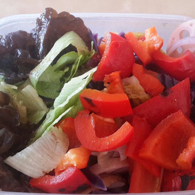 21天的第四天,今天终于可以吃东西了,蔬菜大杂烩啊,圆生菜,长生菜,西兰花,藕,木耳,香菇...