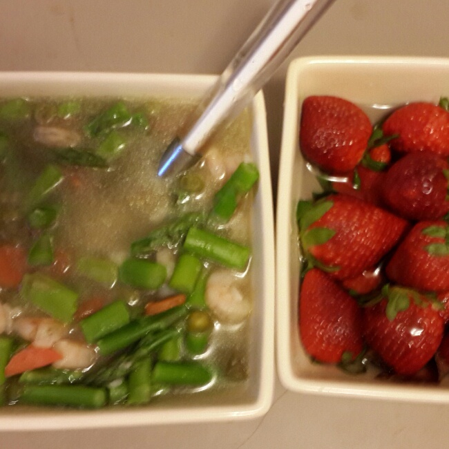 芦笋虾仁排骨汤和草莓