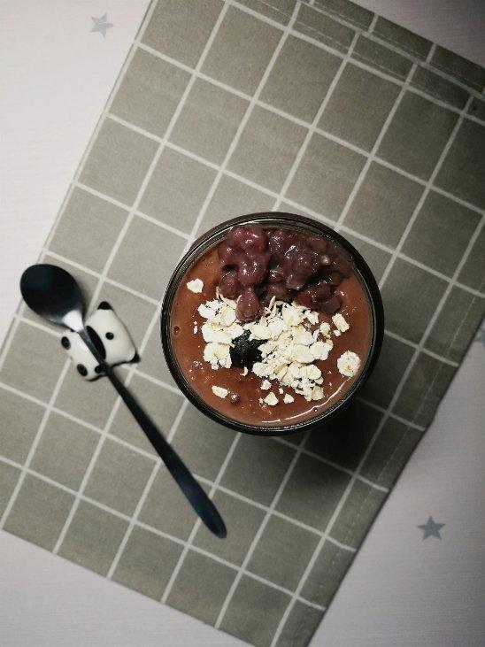 红豆燕麦热可可~没用巧克力,直接把可可粉用少量热水化开了倒入牛奶...