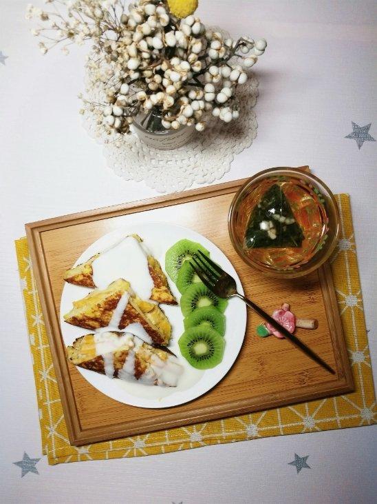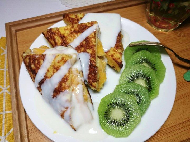 中午做的芒果酸奶西多士,用一点点油煎一下,煎好再用吸油纸吸一吸,...