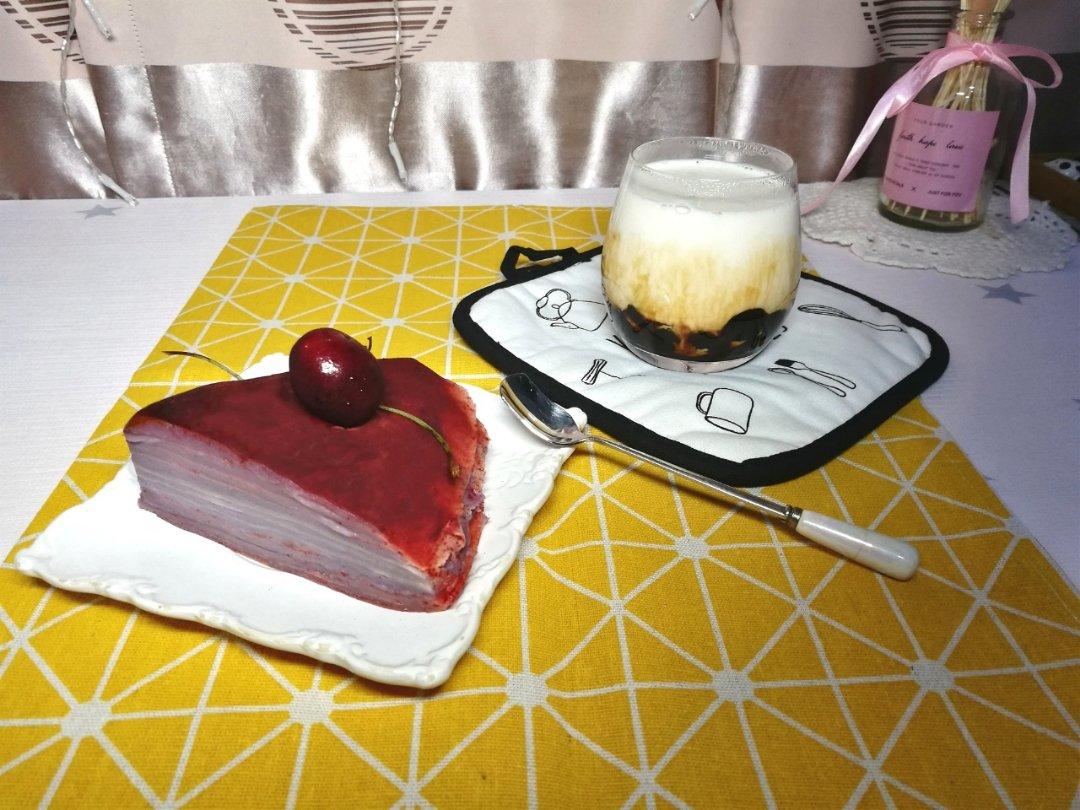 今日份的黑糖珍珠牛奶和芋泥千层蛋糕~