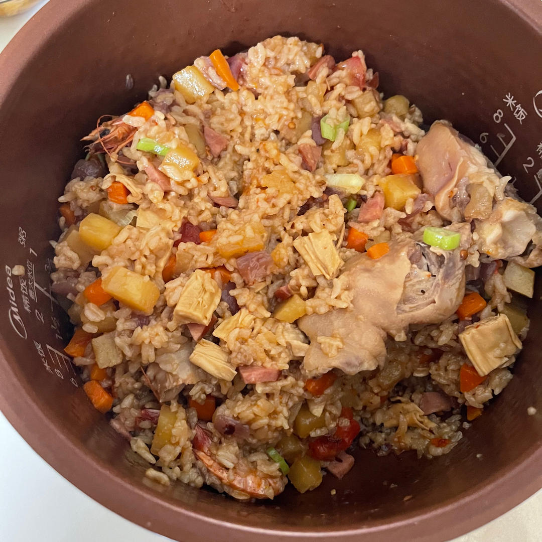 加了点鸡肉和胡萝卜,就是水加多了点,饭有点黏,好在味道不错