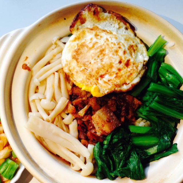 嘘。。。菜心蘑菇和剩的烧肉凑在一起假装煲仔饭( ̄▽ ̄)