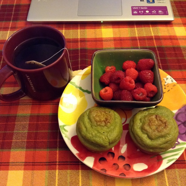 其实是下午茶。突然好想吃抹茶味道蛋糕。用抹茶味的pancake先充数一下吧。