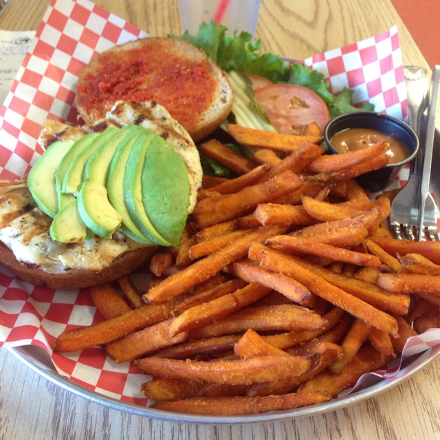 牛油果鸡胸肉汉堡, 炸红薯条才是主菜
